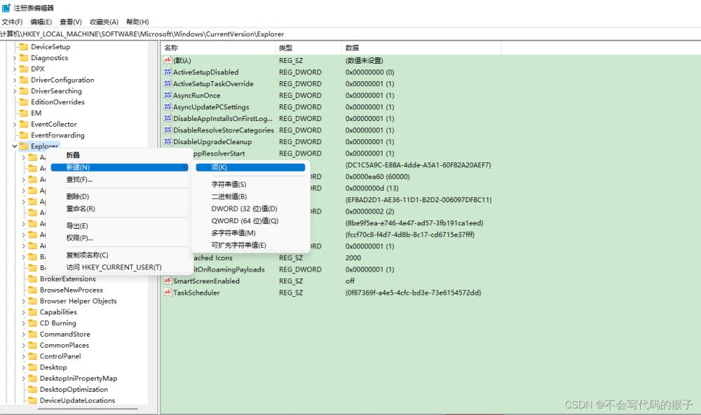 選中Explorer并且右擊,出現操作選項,新建->項
