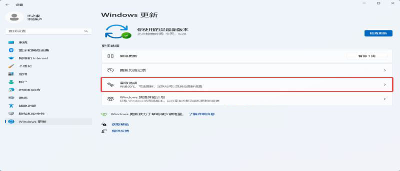 2. 點擊左側的“Windows 更新”,然后點擊“高級選項”