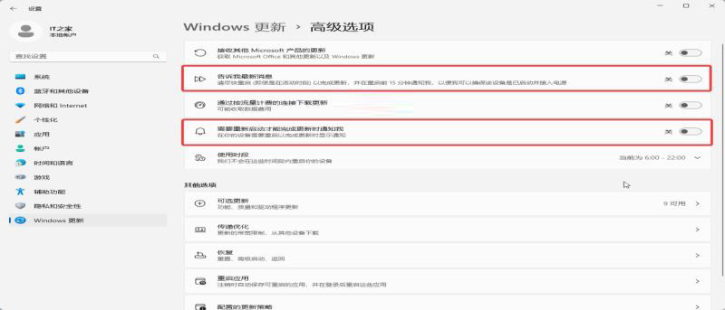 4. 取消“需要重新啟動才能完成更新時通知我”的復選框