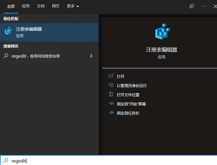 2、按【W(wǎng)in + S】組合鍵,打開Windows 搜索,搜索欄中輸入【regedit】命令,然后點(diǎn)擊系統(tǒng)給出的最佳匹配【注冊表編輯器應(yīng)用】;