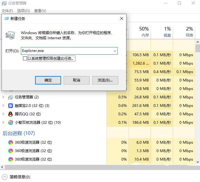 方法一:1、首先,按【Ctrl + Alt + Del】組合鍵,然后點(diǎn)擊任務(wù)管理器。任務(wù)管理器窗口,點(diǎn)擊左上角的【文件】,在打開的下拉項(xiàng)中,選擇【運(yùn)行新任務(wù)】。新建任務(wù)窗口,輸入【Explorer.exe】命令,然后按【確定或回車】即可(勾選以系統(tǒng)管理權(quán)限創(chuàng)建此任務(wù));