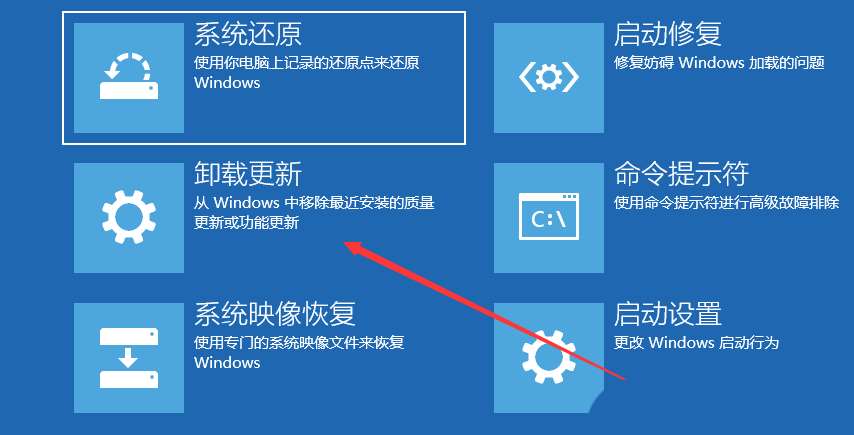 3、多個(gè)選項(xiàng)下,點(diǎn)擊【卸載更新(從 Windows 中移除最近安裝的質(zhì)量更新或功能更新)】;