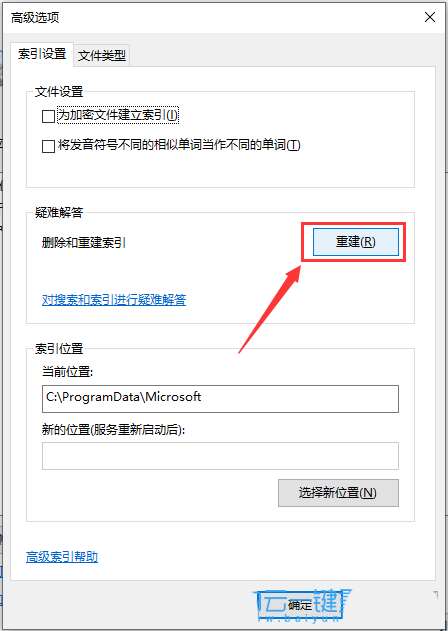 4、第一個【索引設置】選項卡中間部分刪除和重建索引,點擊【重建】;