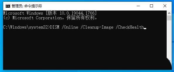 命令提示符中,輸入并按回車執(zhí)行【DISM /Online /Cleanup-Image /CheckHealth】命令,該命令可以用來修復Windows系統(tǒng)鏡像、安裝程序、恢復程序和PE系統(tǒng)