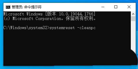 1、命令提示符中,輸入并按回車執(zhí)行【systemreset -cleanpc】命令,可以喚起系統(tǒng)重置;