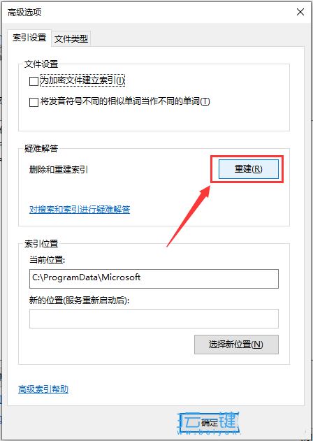 4、第一個【索引設置】選項卡中間部分刪除和重建索引,點擊【重建】;