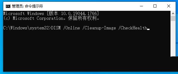 命令提示符中,輸入并按回車執行【DISM /Online /Cleanup-Image /CheckHealth】命令,該命令可以用來修復Windows系統鏡像、安裝程序、恢復程序和PE系統