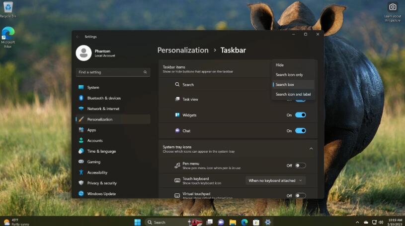 從圖中可以看到,用戶可以自由選擇任務(wù)欄搜索的樣式,包括搜索圖標(biāo)、搜索框、隱藏等,開始菜單中的搜索框也迎來改進(jìn)。