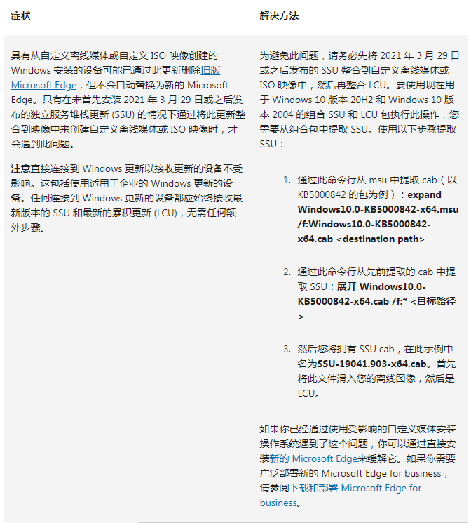 如果用戶已經(jīng)通過使用受影響的自定義媒介安裝操作系統(tǒng)遇到該問題,可以通過直接安裝新的 Microsoft Edge 來緩解它