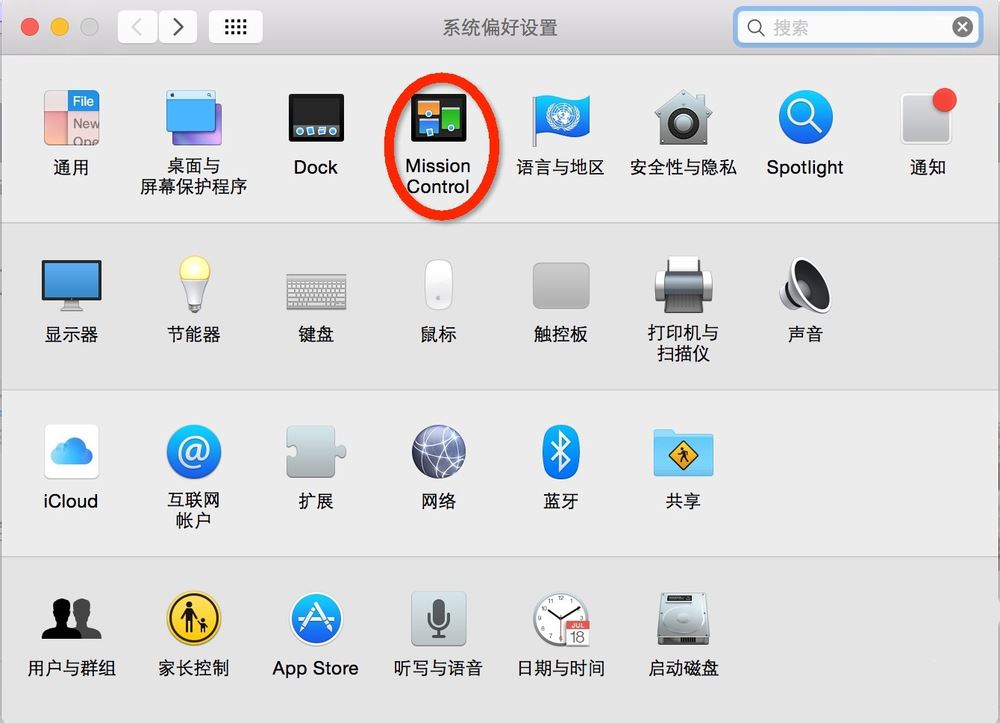 進(jìn)入系統(tǒng)偏好設(shè)置中的=》 mission control