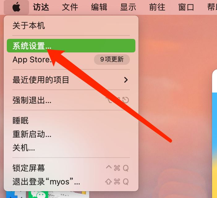 打開Mac系統的菜單欄,點擊系統設置。