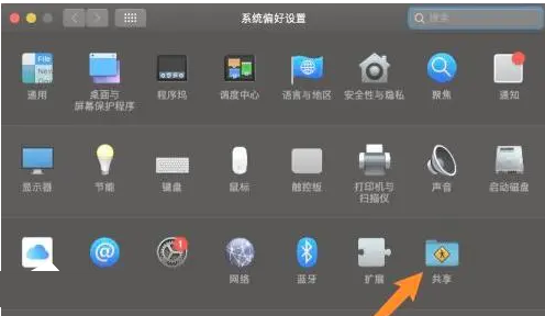2、在系統(tǒng)偏好設(shè)置界面找到“共享”打開(kāi)。