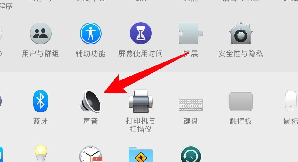 打開系統偏好設置,點擊窗口上的聲音選項。