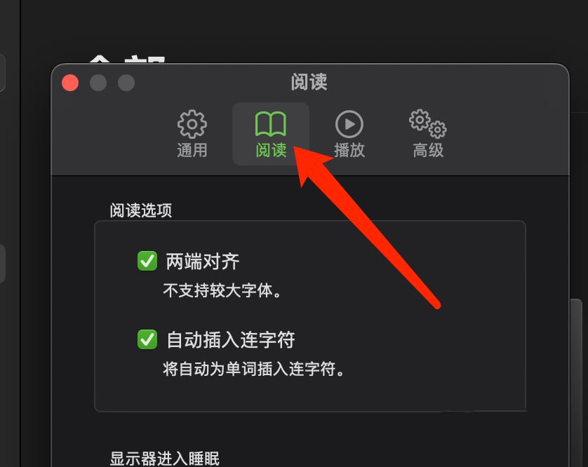 打開Mac系統圖書的閱讀設置頁面,可設置自動插入連字符。操作步驟如下: