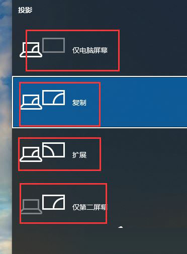 3、所以,如果你希望投影儀和電腦主顯示器同步顯示相同內容的話,只需要選擇“復制”模式,即第二種模式。