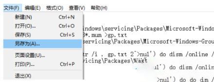for /f %%i in (‘findstr /i 。 gp.txt 2^》nul’) do dism /online /norestart /add-package:“%systemroot%\servicing\Packages\%%i”
