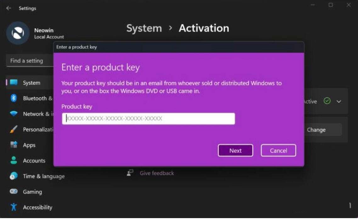 支持深色 / 淺色模式,微軟 Win11 Build 25281 為“產(chǎn)品密鑰”窗口啟用新界面