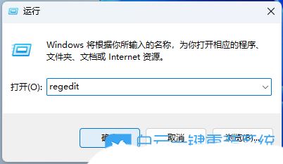 2、運行窗口,輸入【regedit】命令,按【確定或回車】打開注冊表編輯器;