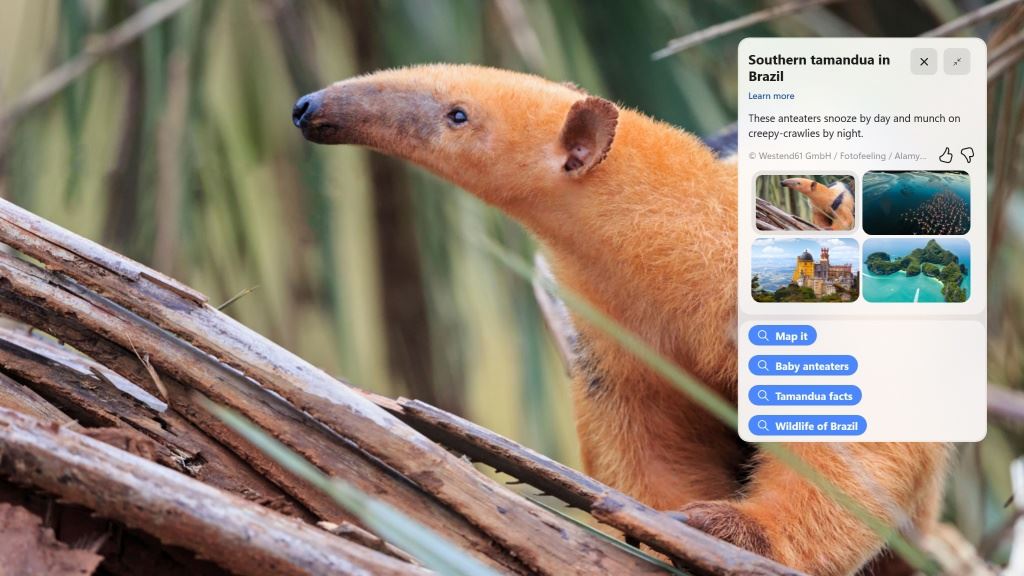 從這個版本開始,微軟開始嘗試對 Windows Spotlight (Windows 聚焦)的外觀進行不同的處理。所有處理將繼續共享現有的核心 Windows Spotlight 功能,例如將鼠標懸停在桌面上的圖標上、右鍵單擊桌面上的圖標以及雙擊桌面上的圖標。Spotlight 的處理將包括更豐富的 UI,圍繞顯示標題和描述以及了解有關通過 Spotlight 在桌面上顯示圖像的更多信息。我們了解到,微軟也在嘗試用不同的方式來切換不同的圖片,包括預覽、全屏體驗和最小化體驗。Dev 頻道的內測人員將在他們的 PC 上看到不同的處理方式,因此并非每個人都會看到相同的內容,并且處理方式將僅以英語顯示。