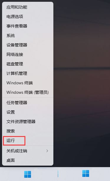 1、首先,按鍵盤上的【Win + X】組合鍵,或右鍵點擊任務欄底部的【Windows開始圖標】,在打開的隱藏菜單項中,選擇【運行】;