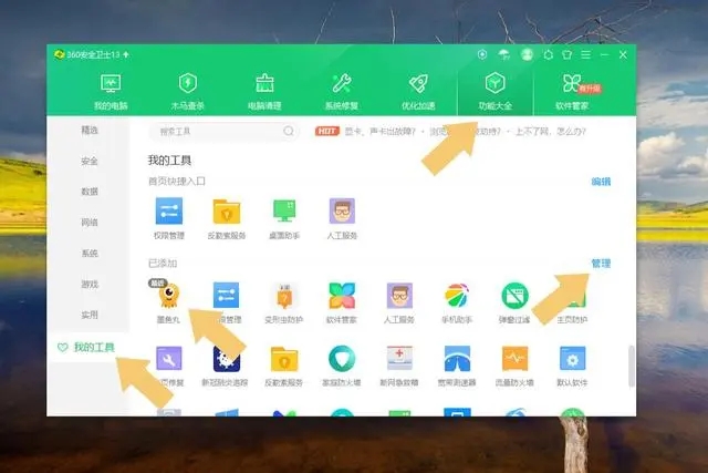 打開360安全衛士以后,依次點擊功能大全、我的工具,找到墨魚丸視頻軟件。如下圖: