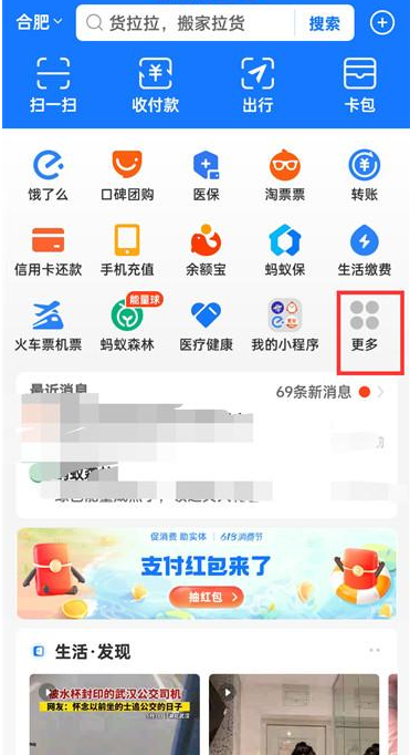 1.首先打開支付寶進(jìn)入到首頁之后點(diǎn)擊【更多】;