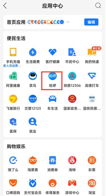 2.然后來到應(yīng)用中心的頁面中點(diǎn)擊【哈啰】;