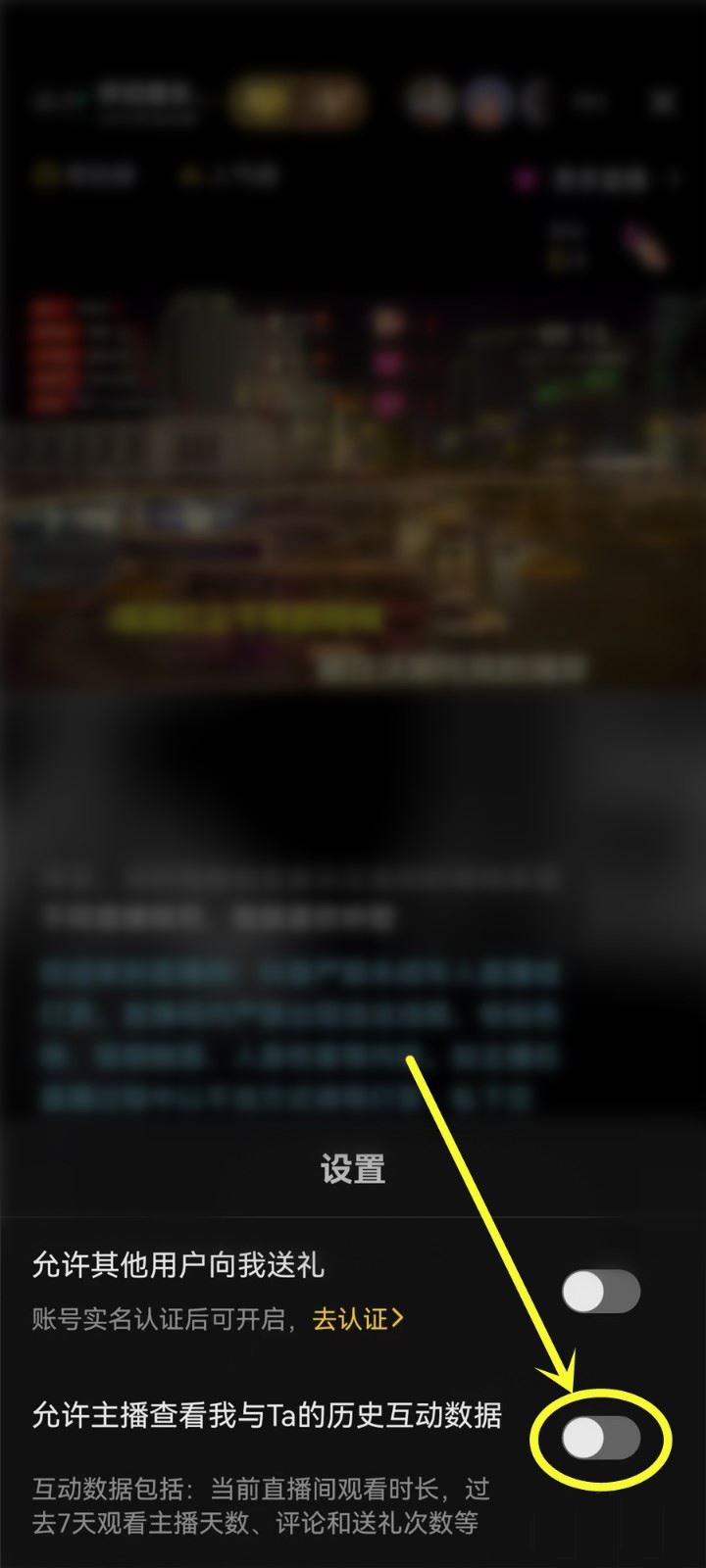 3、關閉主播可以查看我和Ta的歷史互動數據。