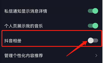 4、最后在這找到抖音相冊功能,點(diǎn)擊右側(cè)按鈕即可關(guān)閉。