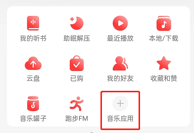 1、打開網易云音樂,點擊我的,找到音樂應用,點擊加號。