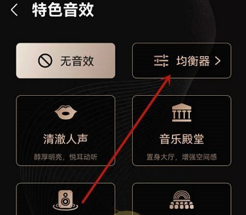 3、接著在特色音效頁面,打開均衡器功能選項(xiàng)。
