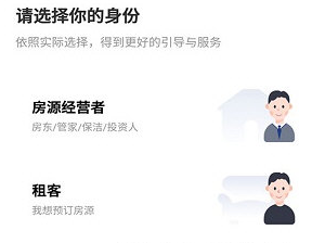 1、注冊/登錄民宿寶app后,選擇身份為【房源經營者】。