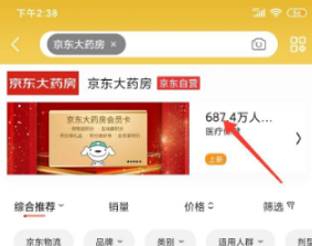2、點擊上方的搜索結果,進入京東大藥房店鋪;