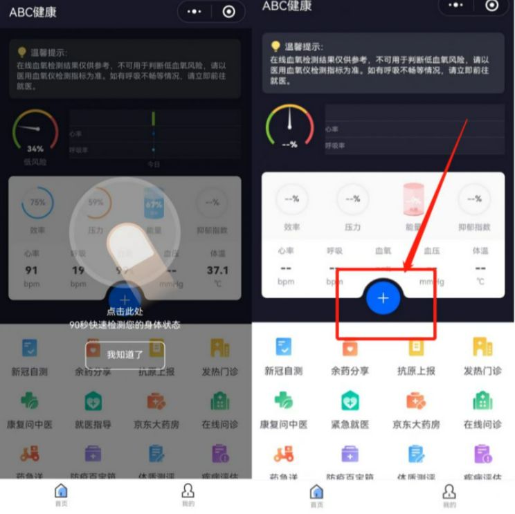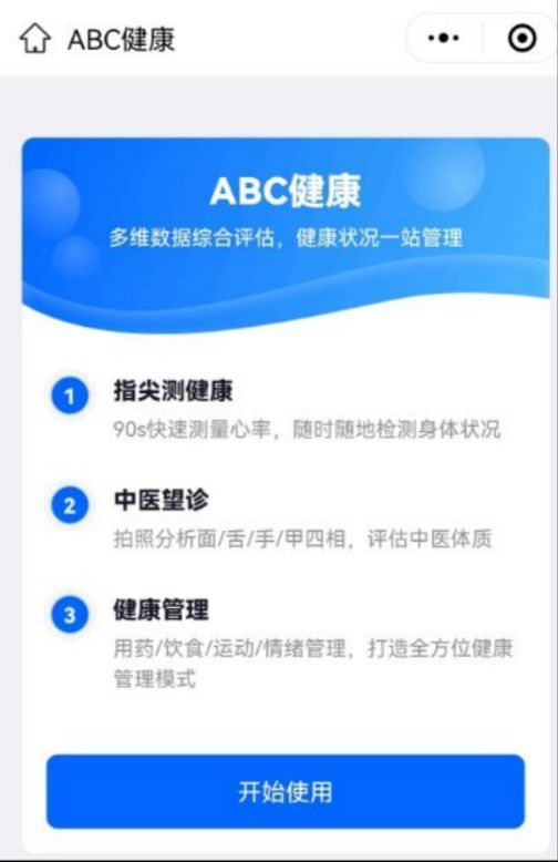(一)進入京東健康測血氧小程序“ABC健康”,點擊開始使用