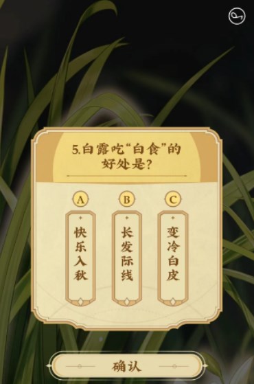 4、完成5道關于白露的題目以后,就能獲得專屬的白食獎勵。