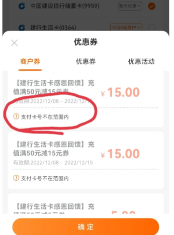 建行生活A(yù)PP支付卡號(hào)不在范圍內(nèi)