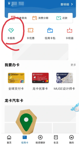 1,打開建設(shè)銀行APP,在最下面選擇信用卡;