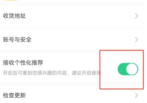 第三步:點擊【接收個性化推薦】后的綠色按鈕, 待顯示灰色即可,詳見下圖所示。