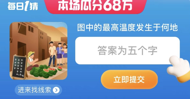 上一條:淘寶圖中的最高溫度發生于何地下一條:淘寶每日一猜圖中場景發生在哪一年