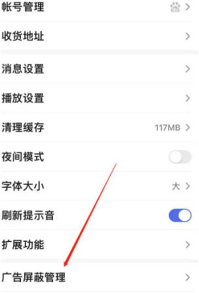 我們進(jìn)入設(shè)置之后,然后我們點(diǎn)擊下面的廣告屏蔽管理的功能,如圖所示。