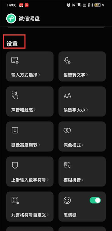 1.首先打開微信鍵盤,進入到微信鍵盤的頁面中往上滑動到設置;
