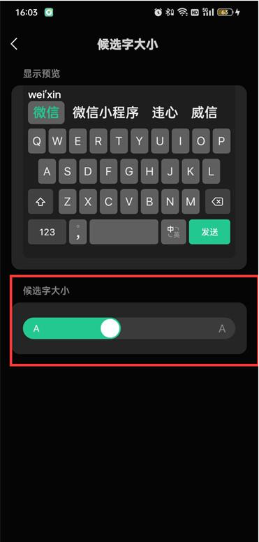 3.最后在候選字體大小的頁面中滑動調整即可;