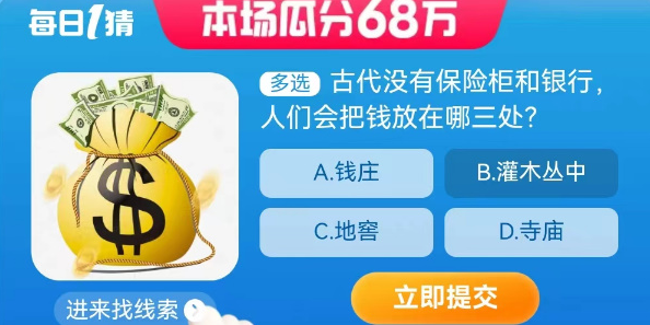 【多選題】古代沒有保險(xiǎn)柜和銀行人們會(huì)把錢放在哪三處?
