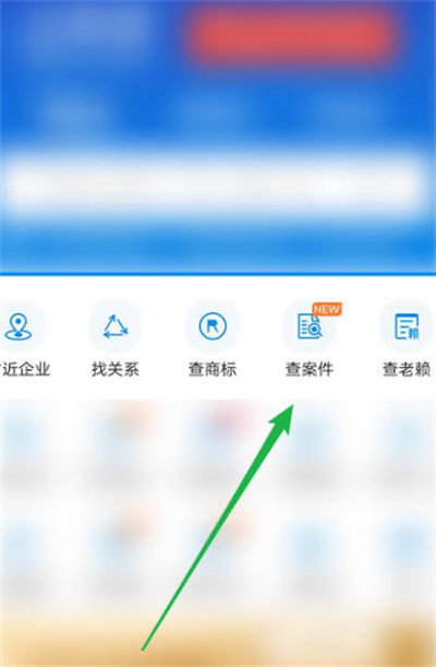 我們打開企查查軟件,然后我們點擊首頁的查案件的功能,如圖所示。