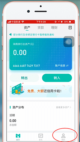 1、首先打開網商銀行app,選擇右下方【我的】