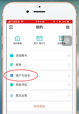 2、找到賬戶與安全