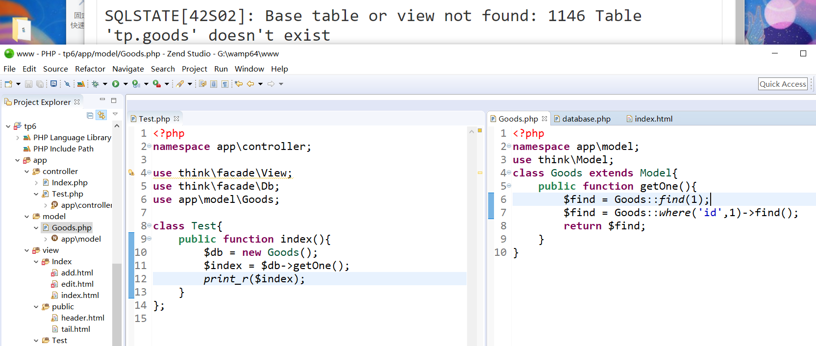 • 跟著課件一模一樣的操作使用tp6,出現(xiàn)了錯誤